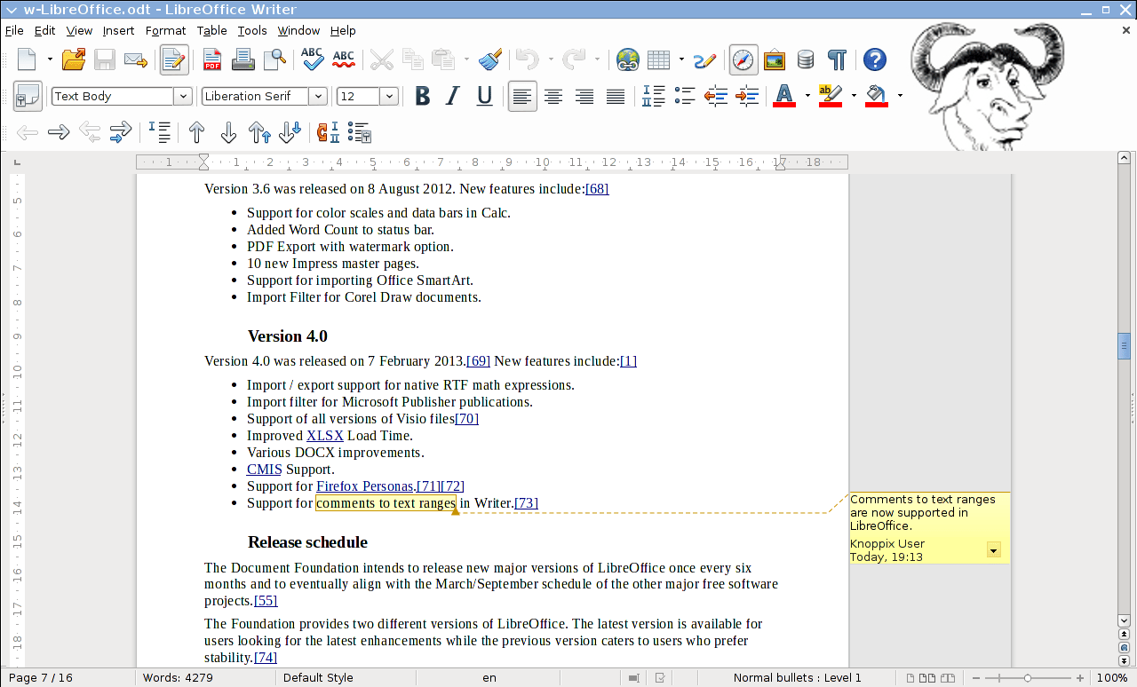 LibreOffice 4.3 est publié, avec un nouveau filtre d’import/export DOCX basé sur DrawingML pour les formes et les blocs de texte, un import PDF amélioré, un meilleur jeu d’icônes par défaut, des commentaires imprimables dans les marges et la prise en charge des paragraphes de plus de 65 536 caractères dans Writer